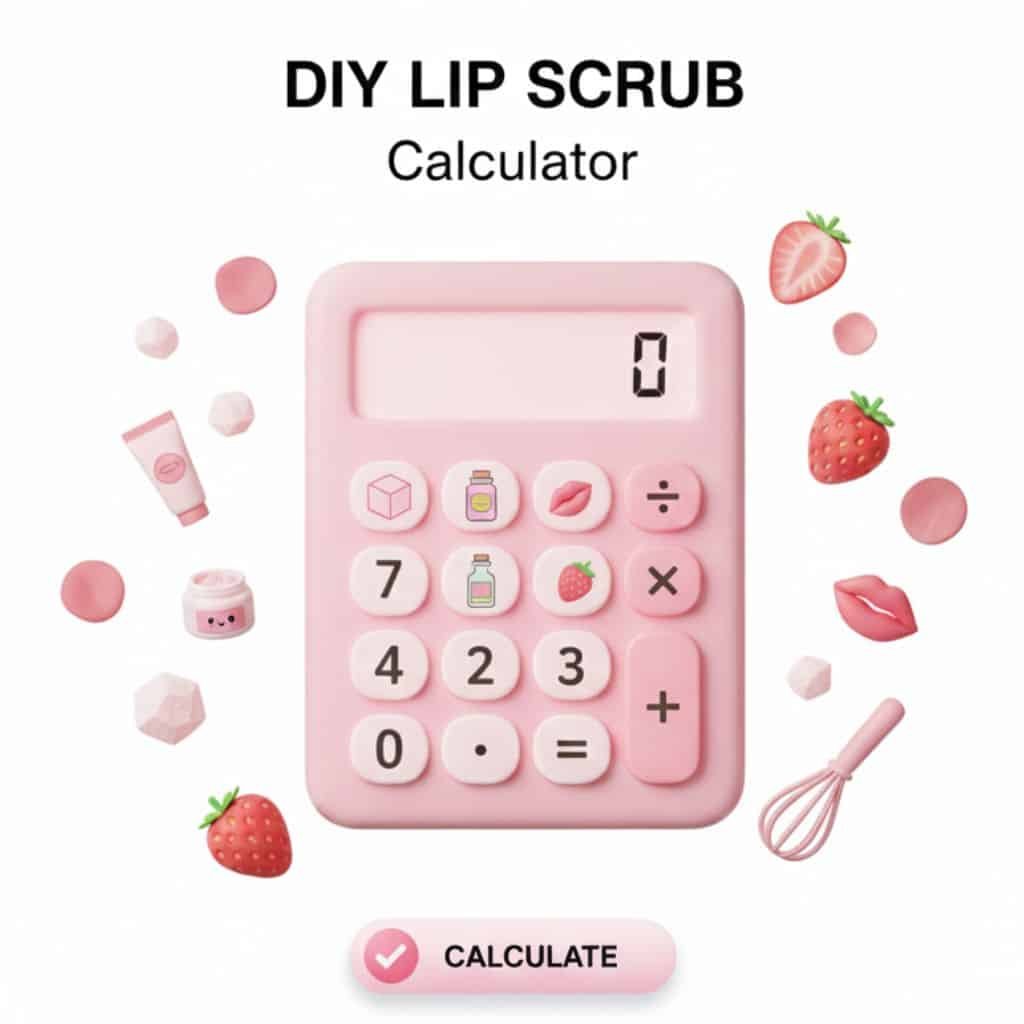 Create a custom DIY lip scrub without guessing proportions. This Lip Scrub Calculator turns your selected sugars and oils into a simple, ready-to-use recipe — no messy maths required.